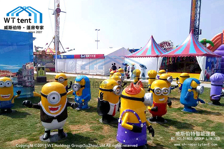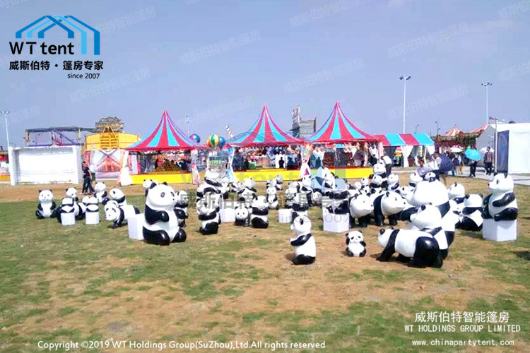 此次嘉年华中,多个欧式尖顶篷房搭建在广场上,富有童趣又不失优雅的外形吸引了大多人的眼光,位游客提供了玩耍休闲的场所,另外威斯伯特还可以在锥顶篷房中布置木地板、空调、帷幔、照明灯内部装饰。